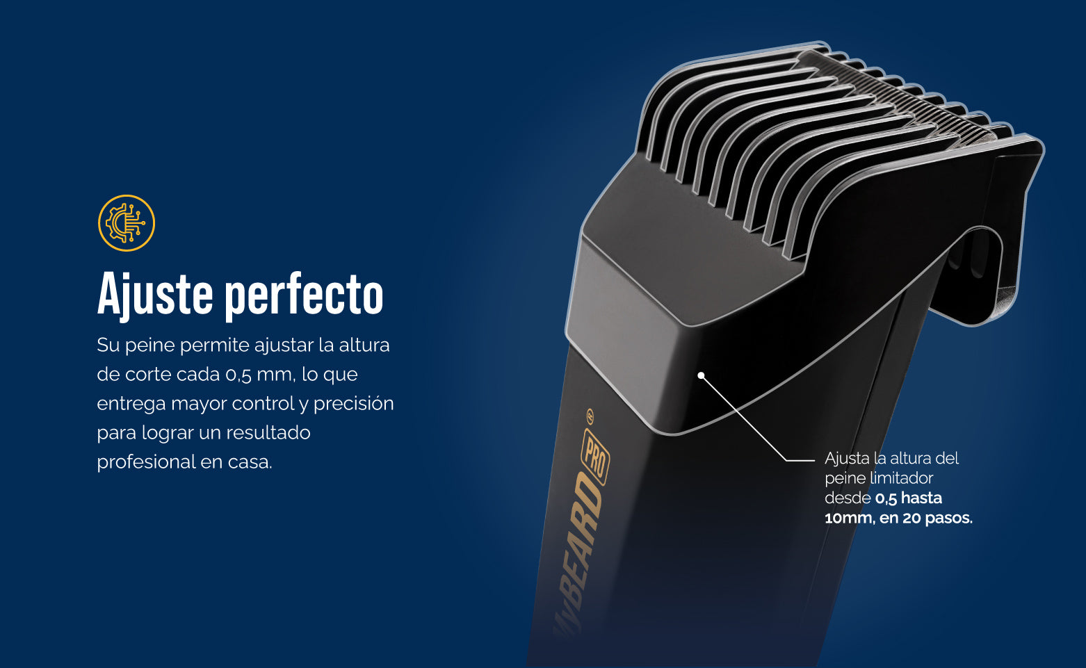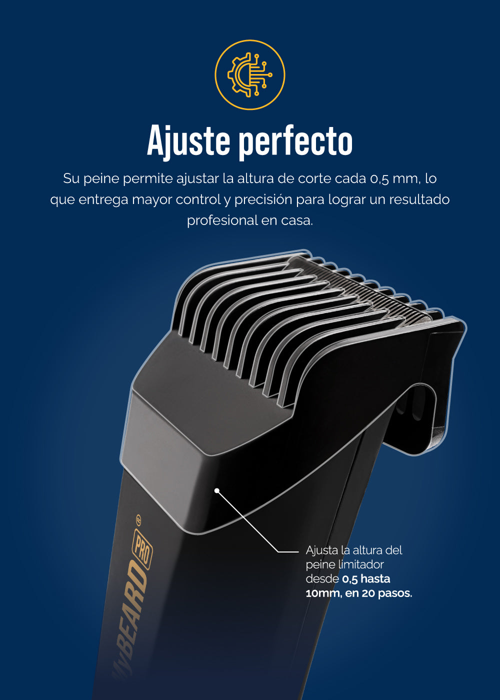 Con la nueva Rasuradora de barba MyBEARD Pro® de MyHUEVOS® domina tu Look con precisión profesional. Motor silencioso, cuchilla cerámica y 20 niveles de corte: un solo peine, infinitas posibilidades.